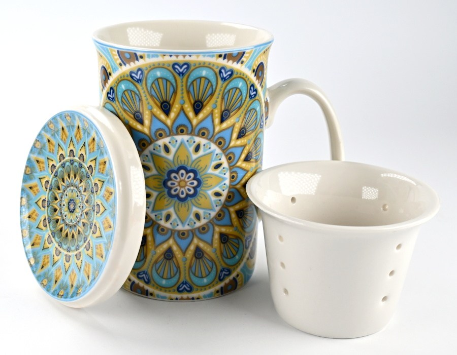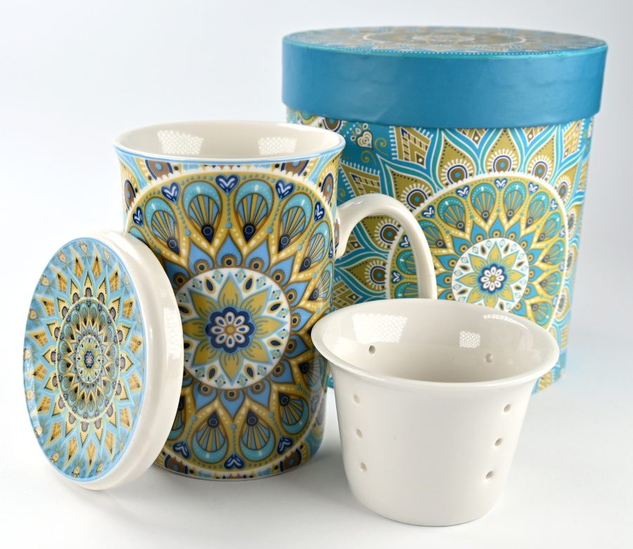 Úvod » Čajová keramika » HRNČEK Mandala 2 so sitkom 0,32l – porcelán – darčeková krabička