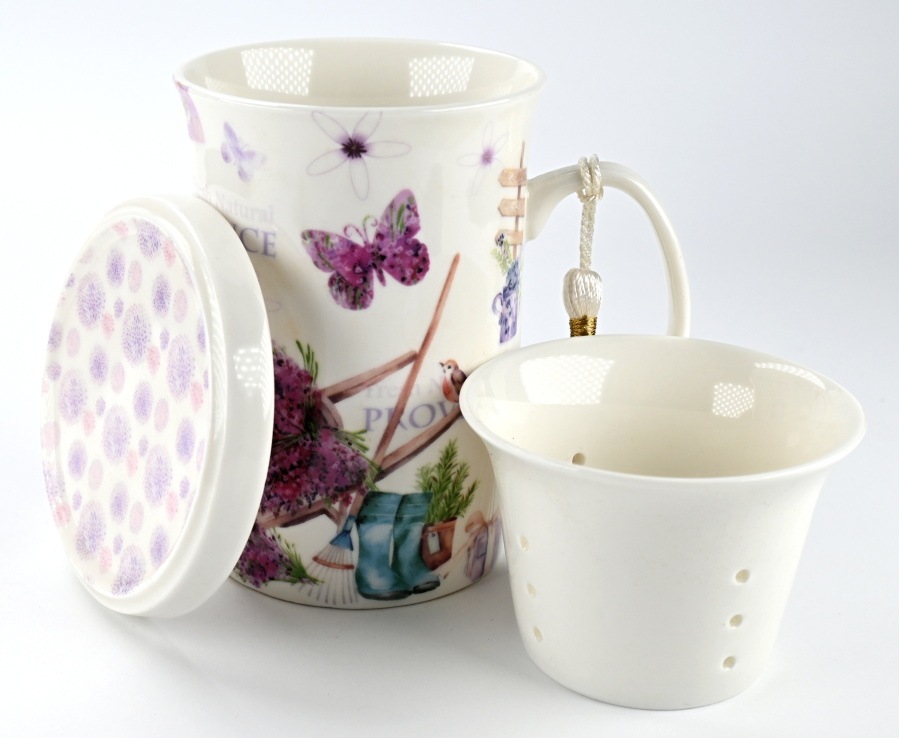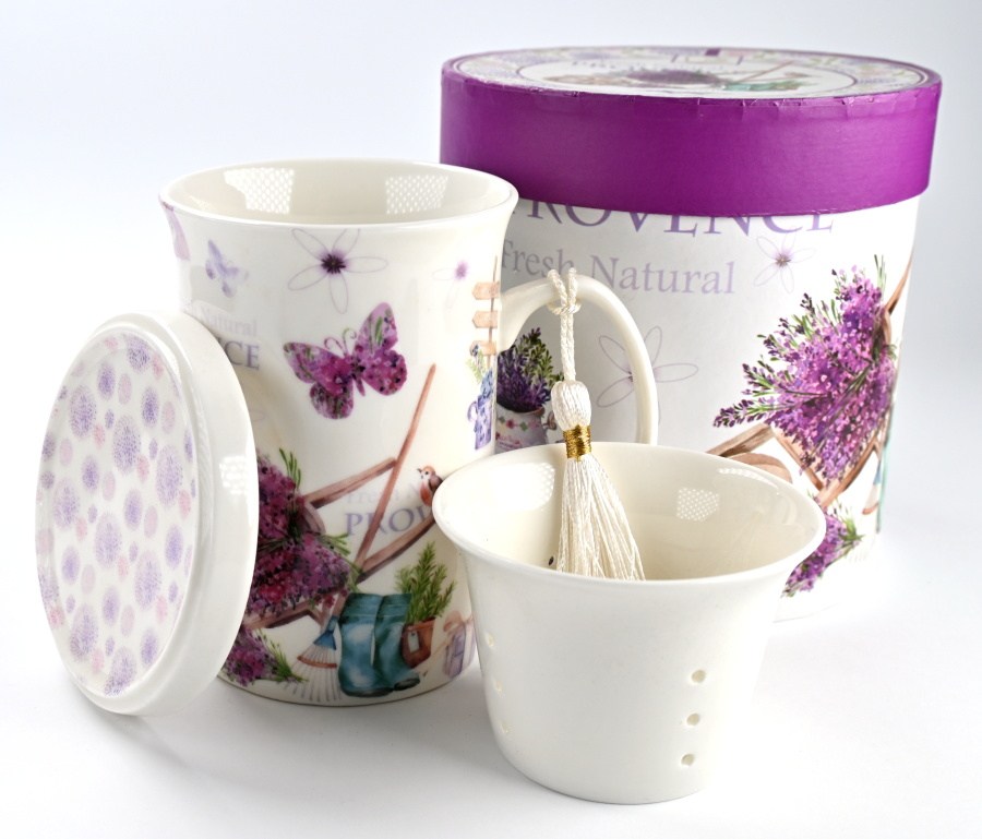 Úvod » Čajová keramika » HRNČEK Provence so sitkom 0,32l – porcelán – darčeková krabička