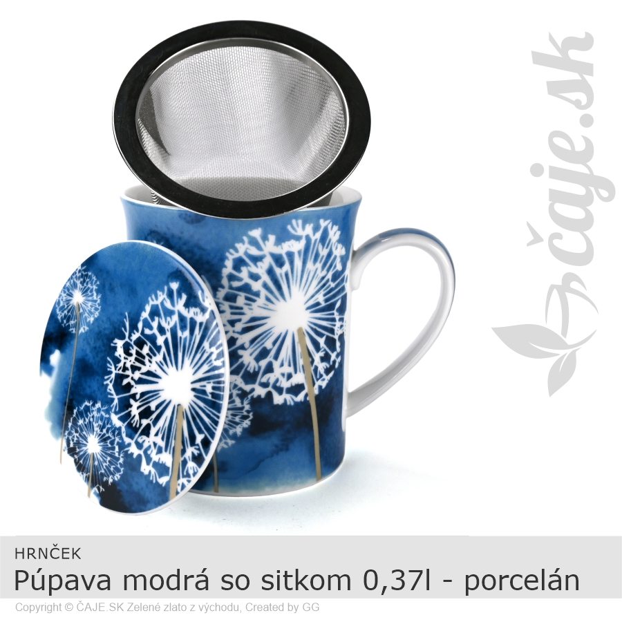 Úvod » Čajová keramika » HRNČEK Púpava modrá so sitkom 0,37l – porcelán