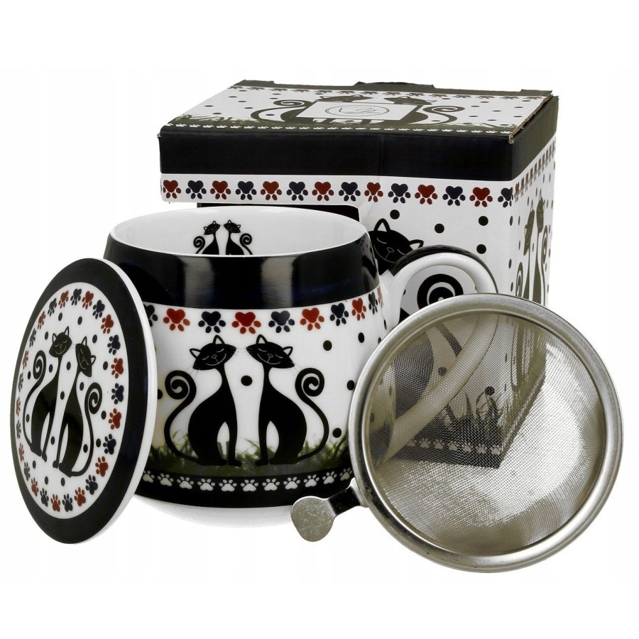 Úvod » Čajová keramika » HRNČEK Two Cats so sitkom 0,43l – porcelán – darčeková krabička