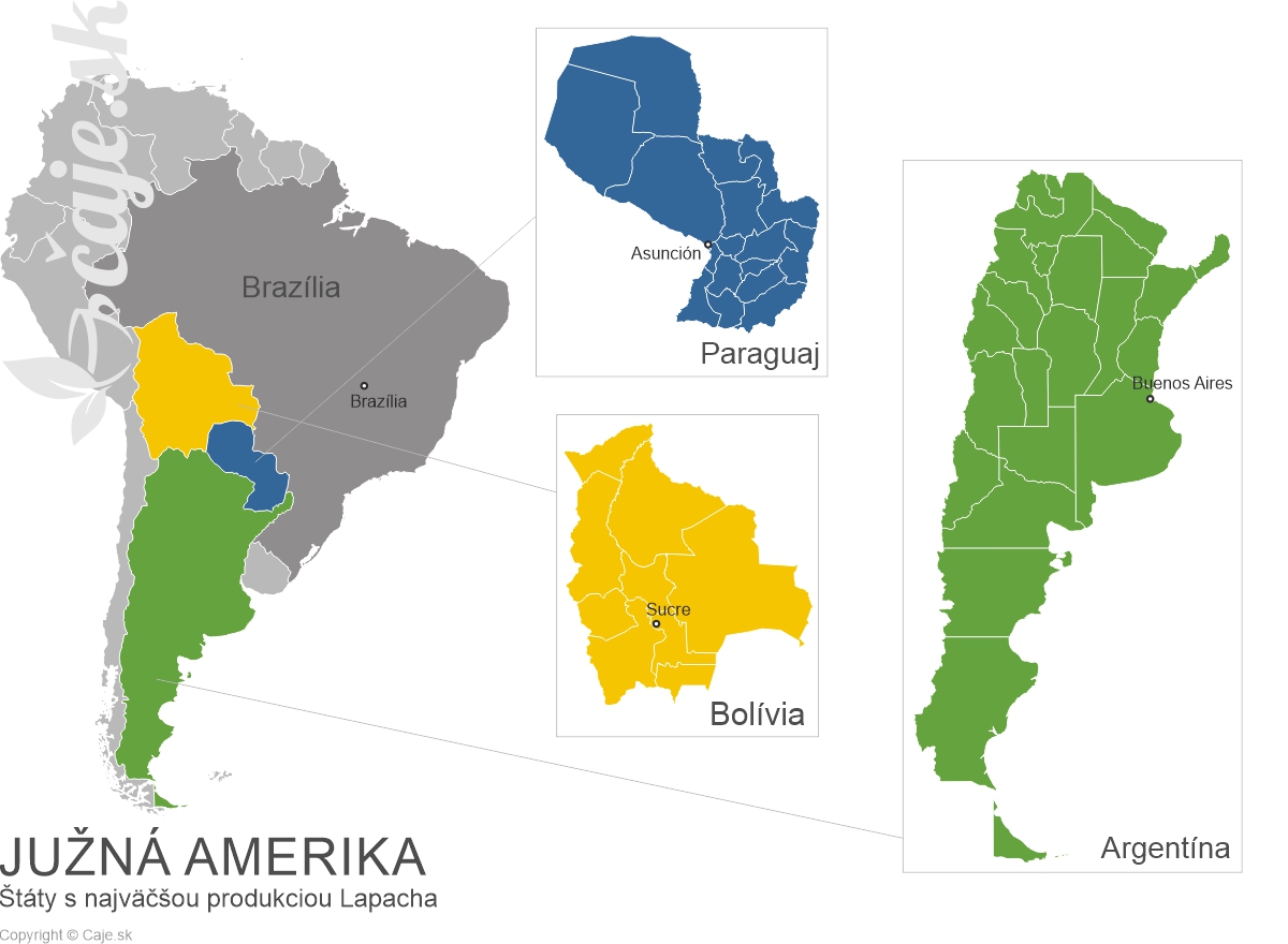 Medzi najväčších dodávateľov Lapacha patrí nepochybne severná Argentína, Paraguaj, Bolívia a Brazília.