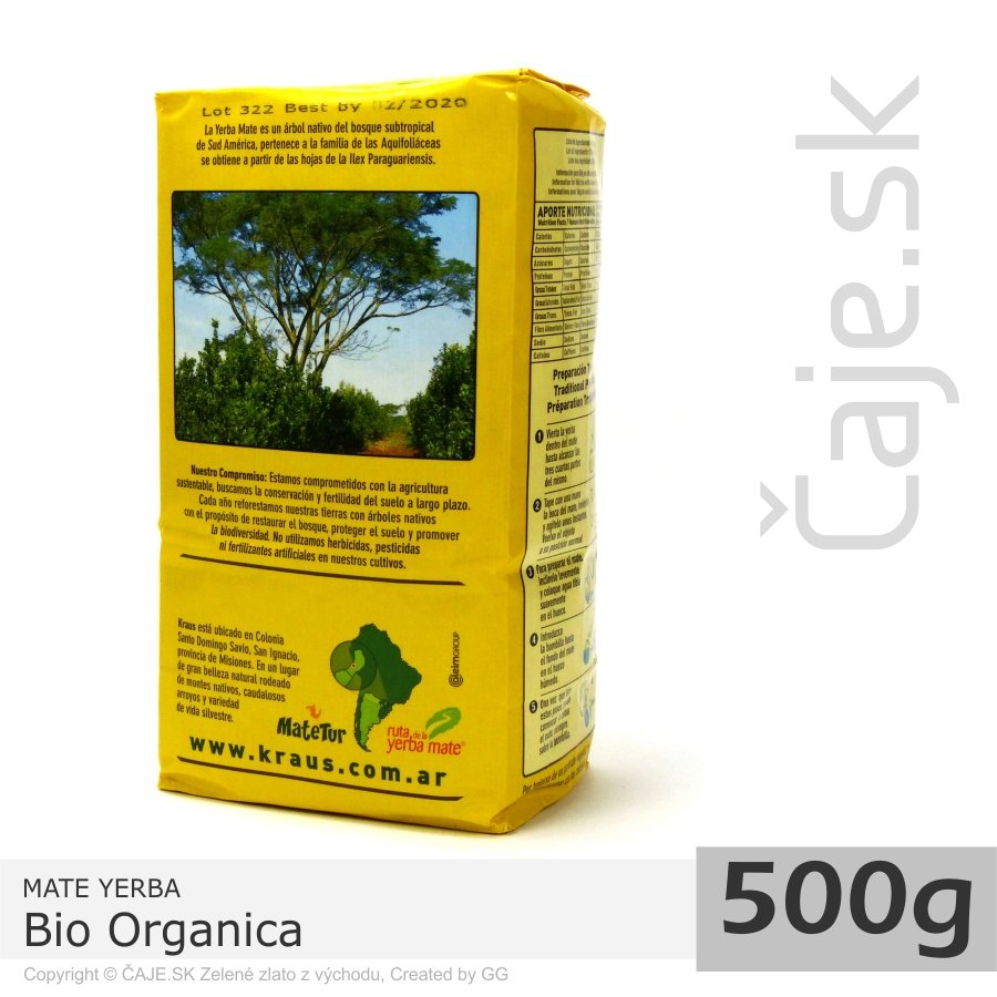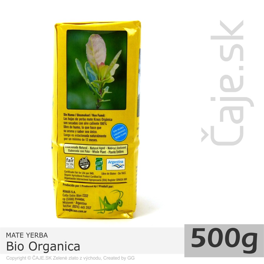 Yerba mate Kraus je prírodný produkt 100%, a to bez akýchkoľvek pesticídov, fungicídov alebo herbicídov. Okrem toho má medzinárodný certifikát kvality OIA. Pri pestovaní (výrobe) neboli použité žiadne priemyselné hnojivá, ochranné chemické prostriedky ani geneticky modifikované organizmy.